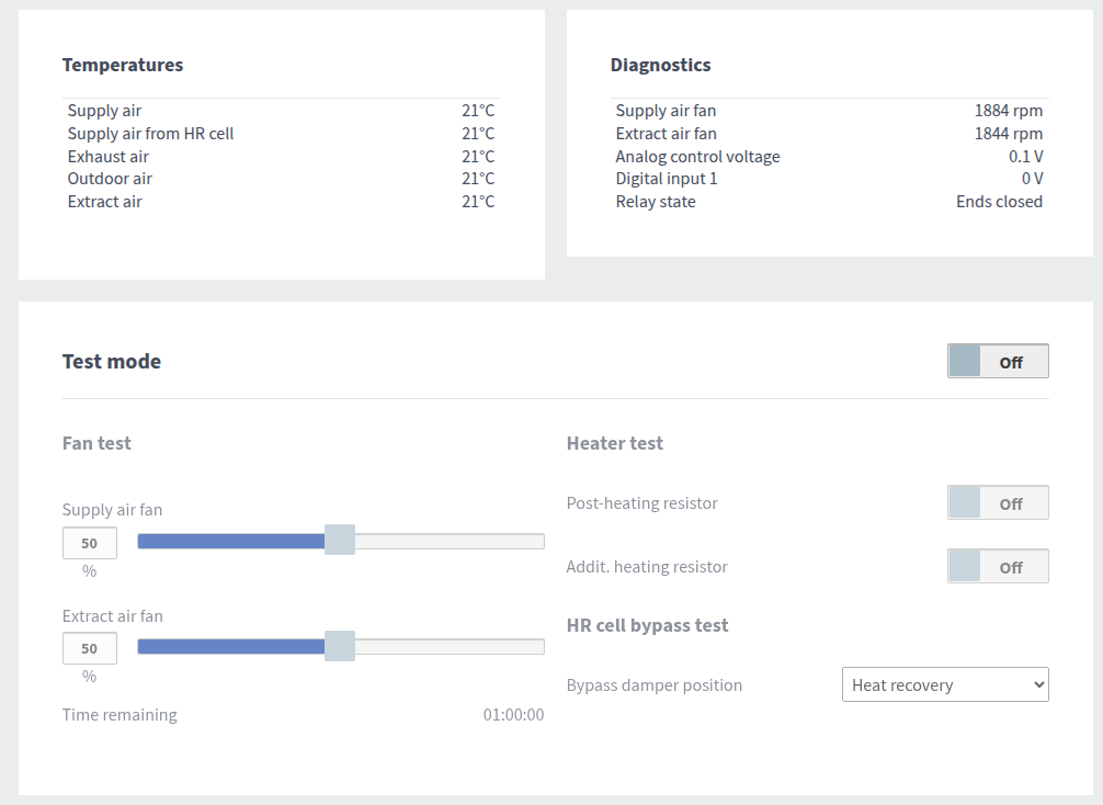 - brug enheden i testtilstand