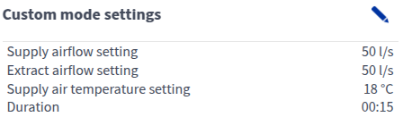 - Tilluftventilator - Viser den indstillede tilluftmængde.
