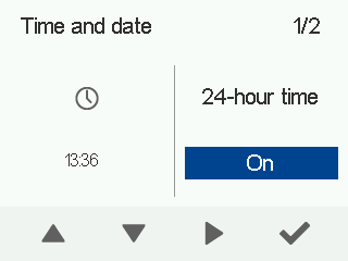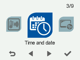 - Vælg Tid og dato med pileknapperne.
