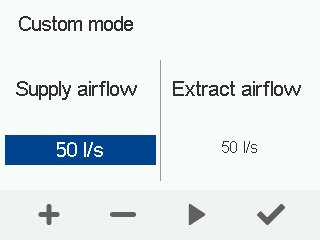 - Indstil tilluft - og fraluftmængderne til Special-tilstanden, og juster ventilerne i henhold til ventilationsplanen.
