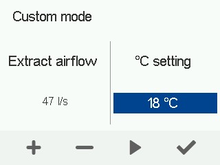 - Du kan justere tillufttemperaturen og deaktivere fugt- og kuldioxidkontrollen.