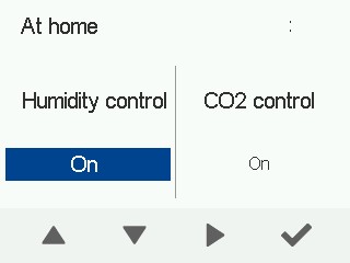 - Du kan justere ventilatorhastigheden og tillufttemperaturen for Hjemme-tilstanden og deaktivere fugt- og kuldioxidkontrollen.