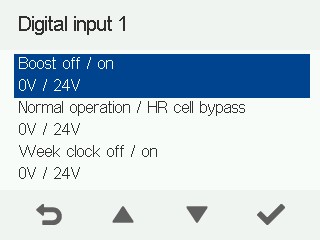 • Boost fra / til - Skifter ventilationsenheden til Boost-tilstanden i henhold til eksterne kontaktdata fra f.eks. en emhætte eller en kontakt.