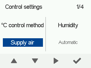 - Brug pileknapperne til at vælge kontrolmetode for tillufttemperaturen.