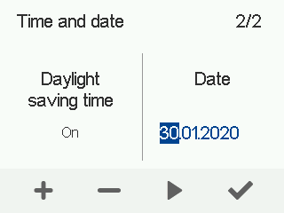 - Brug knapperne Plus og Minus til at indstille dagen.