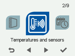 2. Vælg Temperaturer og sensorer med pileknapperne: