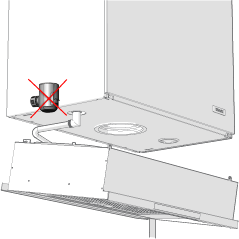 In MyVallox 51K CFi, an elbow is mounted in the bottom pool between the unit and the cooker hood. A condensing water tube is led from the elbow e.g. into the siphon of the sink or to the floor drain. The siphon must not be installed inside the cooker hood. Instead, it must be installed in the condensing water tube so as to enable maintenance measures. There are approx. 2 mm wide holes at the rear of the bottom of the MyVallox 51K CFi ventilation unit marking the position where the condensing water tube must be installed.