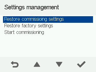 - Restore setup settings — Restores the ventilation unit settings configured during setup.