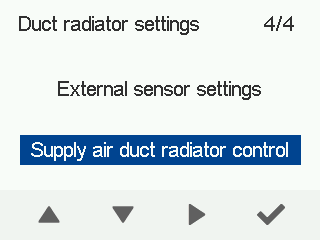 8. Select Duct radiator control as the relay’s operating mode with the arrow buttons.