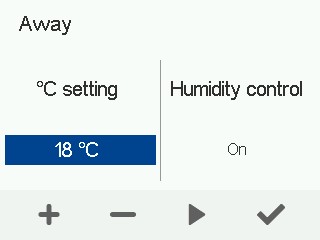 The air flows in the Away mode are automatically 30% lower than the air flows in the At Home mode, but they can be adjusted. Other Away mode settings are configured identically to the settings of the At Home mode.
