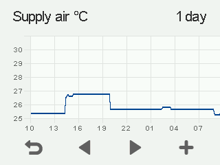 A graph describing the exhaust air temperature in the past 24 hours appears: