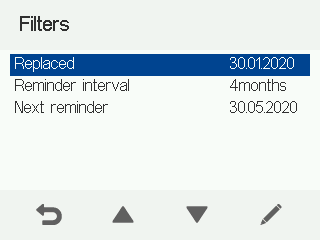 • Next reminder — The day on which the system will remind about the next filter replacement.