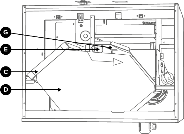 - Remove the extract air filter (C).
