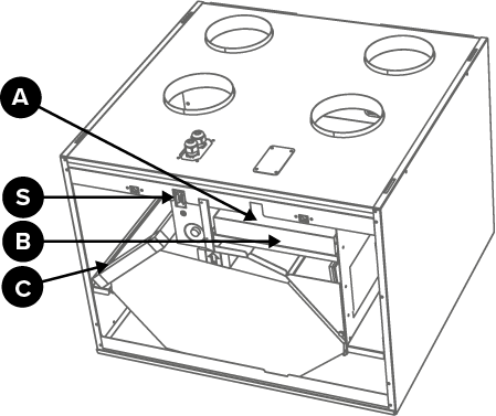 - Close the door of the unit. Ensure that the safety switch catch of the door is engaged (S), allowing the unit to be turned on.