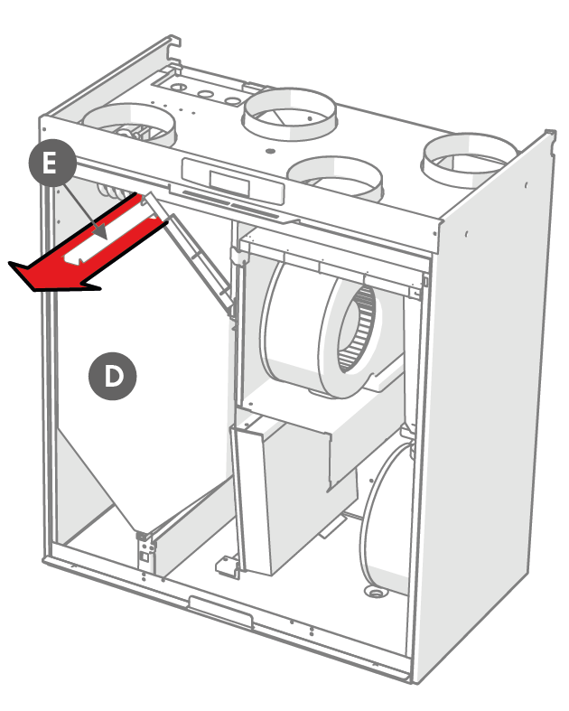 Check that the heat recovery cell is clean roughly once a year, or whenever the filters are being replaced. Clean by washing as required.