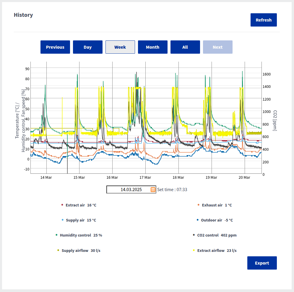- Statistika salvestamiseks valige Ekspordi.Fail salvestatakse Exceli vormingus. See funktsioon on saadaval ainult MyVallox Cloud liideses.