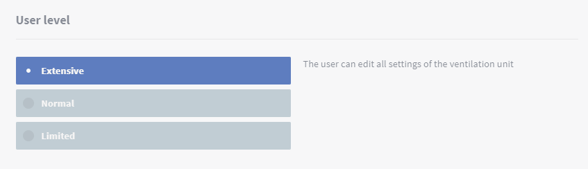 Ventilatsiooniseadme kasutajataseme muutmiseks: