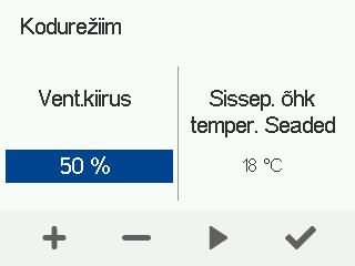 - Saate reguleerida ventilaatori kiirust ja sissepuhkeõhu temperatuuri Kodus režiimis ning keelata niiskuse ja süsinikdioksiidi juhtimise.