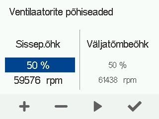 Esmalt konfigureerige ventilaatori põhiseaded, et seadistada Kodus režiimi ventilaatori kiirused.