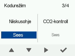 - Kasutage noolenuppe, et lubada või keelata ventilaatori kiiruse automaatne reguleerimine süsihappegaasi sisalduse alusel.