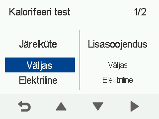 Kütteseadme test 1/2-ekraan avaneb: