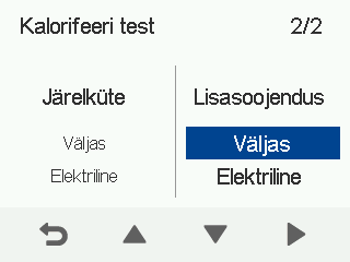 Valige Kütteseadme test nooleklahvidega:
