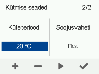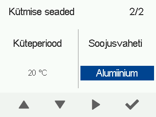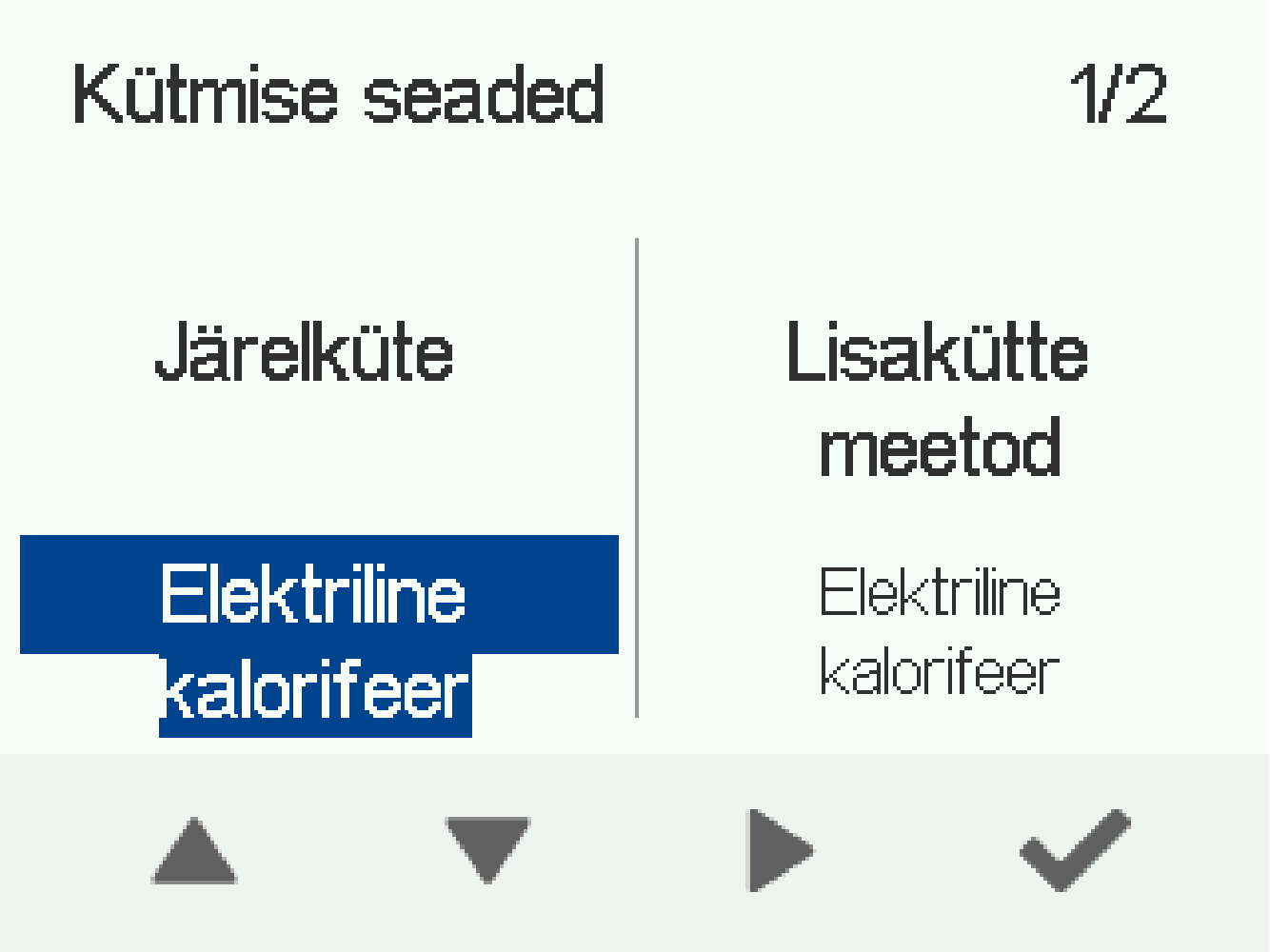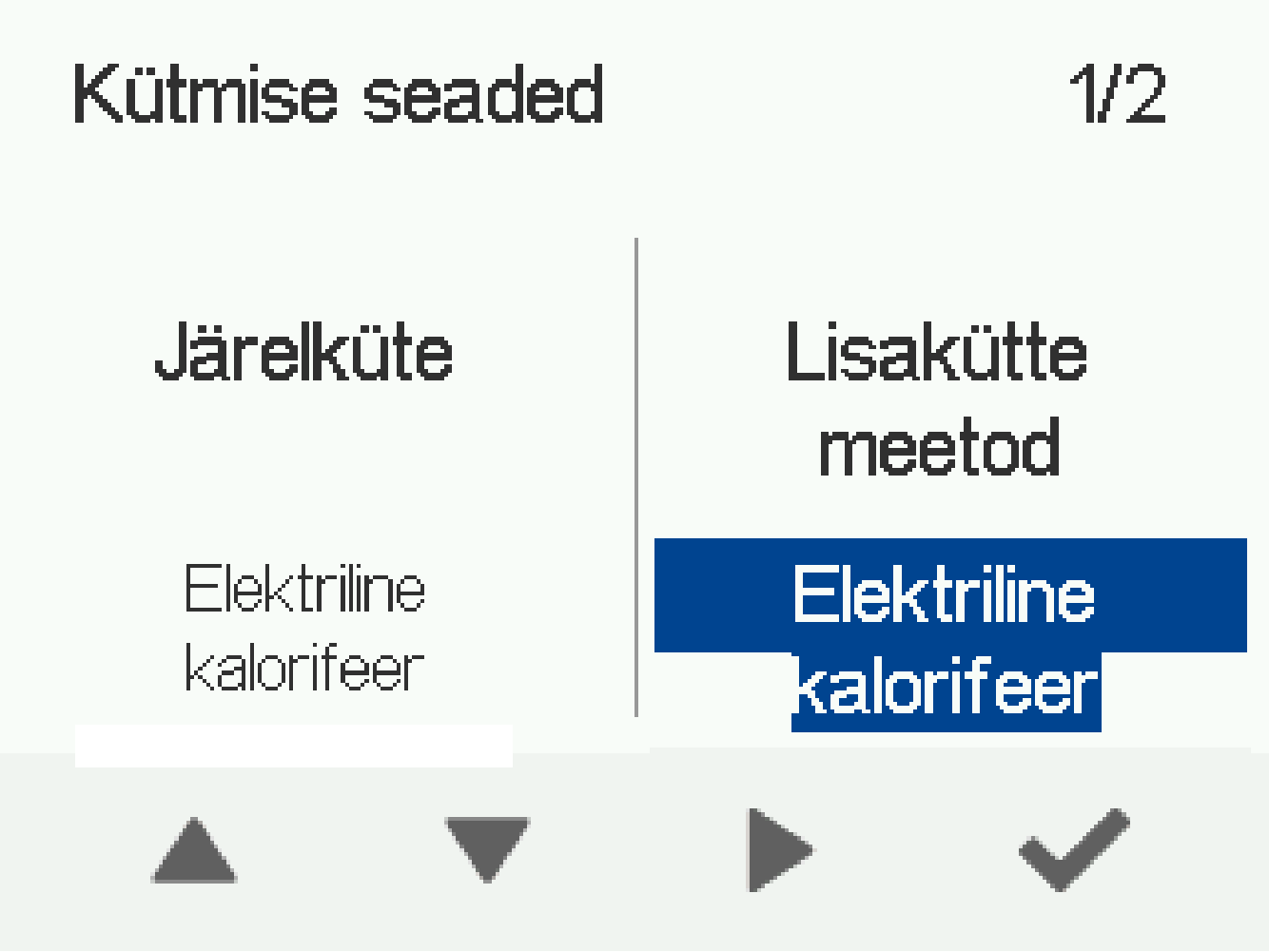 8. Valige täiendav küttemeetod nooleklahvidega: