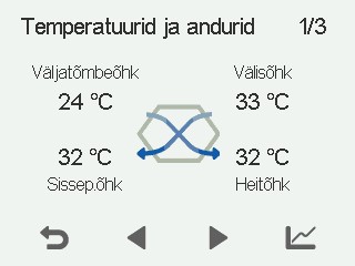 • Väljatõmbeõhk — Näitab seadmesse siseneva ja korterist väljatõmmatava õhu temperatuuri.