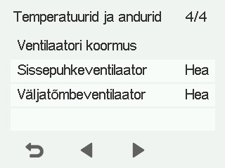 - Kuvatakse sissepuhkeventilaatori ja väljatõmbeventilaatori hetkeolek.