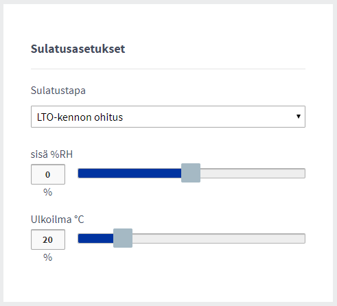 LTO-kennon ohitus — Tässä sulatustavassa lämmöntalteenottokenno ohitetaan tuloilman puolelta. Tällöin tulo- ja poistoilmavirtojen välinen suhde ei muutu. Tämä puolestaan estää joissakin tapauksissa haitallisen alipaineen muodostumisen asuntoon.