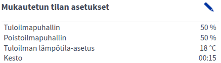 Ilmanvaihdon tilan näyttö avautuu muokkaustilassa:
