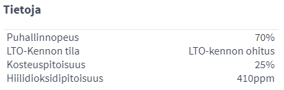 LTO-kennon tila — Ilmaisee ilmanvaihtokoneen lämmöntalteenottokennon tilan. Mahdolliset tilat ovat: