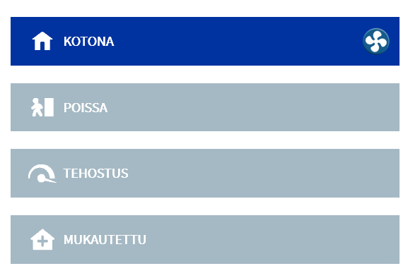 Valitse Ilmanvaihdon tilat-alueelta haluamasi ilmanvaihdon tila napsauttamalla sitä.