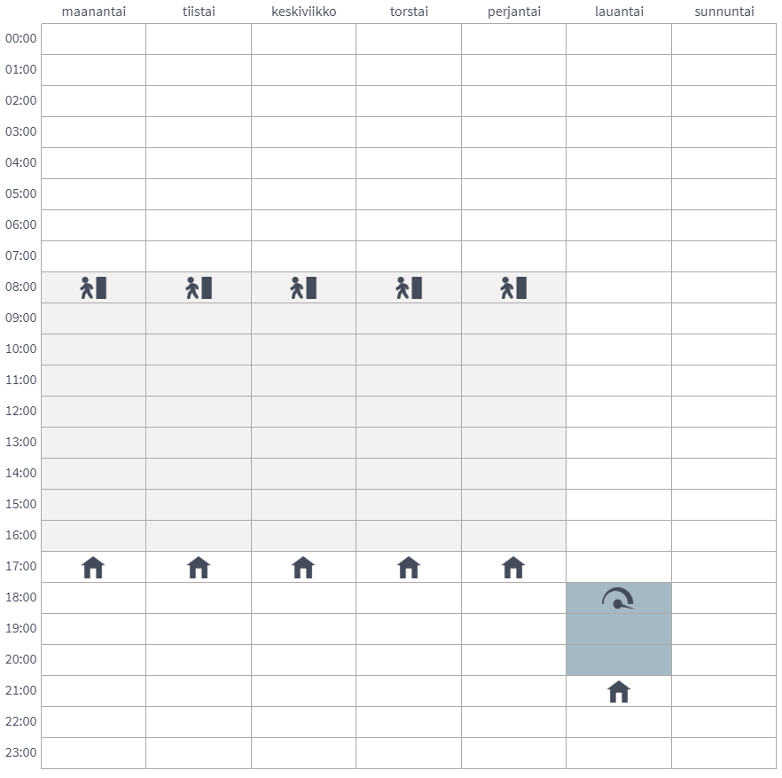 • Ma-pe klo 8 - 16 olet poissa kotoa.