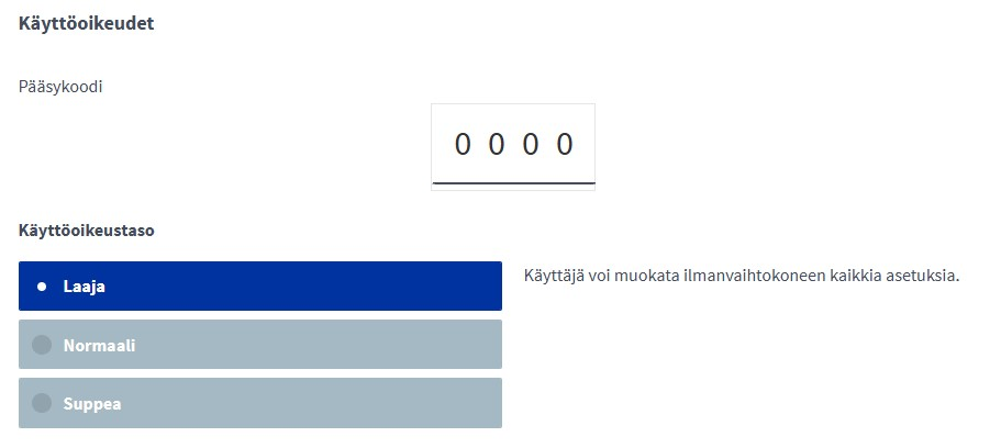 Poissa- ja Tehostus-ilmavirtojen asettaminen