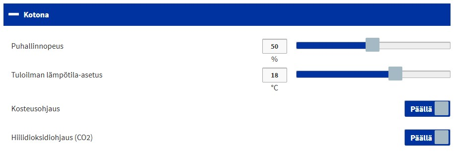 Puhaltimien perusasetukset ja ilmanvaihdon tilat