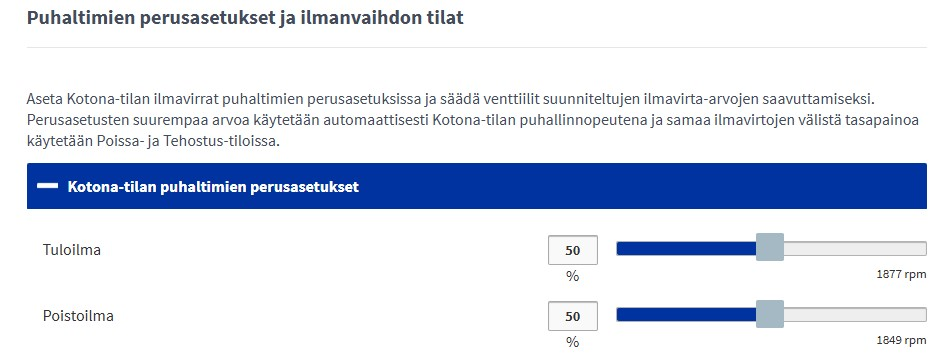 Puhaltimien perusasetukset ja ilmanvaihdon tilat