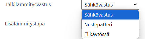 sulatustoimintaan. Jos valitset, että jälki- ja lisälämmitys eivät ole käytössä,