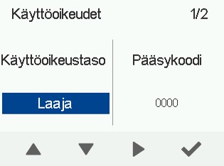 Käyttöoikeustasolla määritetään, mitä asetuksia käyttäjä voi muokata ja tarkastella. Käyttöoikeustasoja ovat: