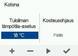 - Halutessasi voit muokata tuloilman lämpötila-asetusta ja kytkeä kosteus- ja hiilidioksidiohjaukset pois päältä.