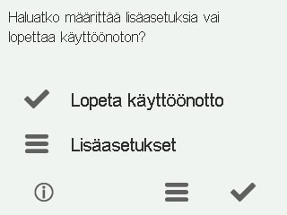 Voit joko lopettaa käyttöönoton tai voit jatkaa määrittämään lisäasetuksia.