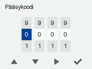 Kun pääsykoodin kysely on aktivoitu, ohjaimen näytöllä näkyy lukkoikoni. Pääsykoodi on nelinumeroinen koodi.