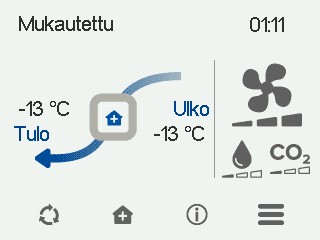 Suosittelemme, että kasvatat Mukautettu-tilassa tuloilmapuhaltimen nopeutta ylipaineen saamiseksi ilmanvaihtovyöhykkeelle. Emme suosittele poistoilmapuhaltimen tehon pienentämistä.
