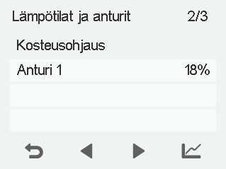 Avautuu näyttö, jossa näkyy kosteusanturien 1-3 mittaama suhteellinen ilmankosteus.