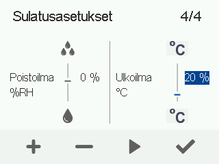 Sulatuksen herkkyys vaikuttaa siihen, kuinka herkästi ilmanvaihtokone aloittaa lämmöntalteenottokennon sulatuksen.