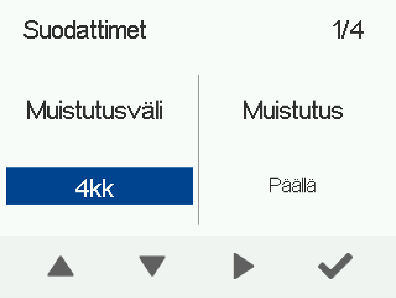 - Aseta haluamasi muistutuksen kuukausimäärä Muistutusväli-kenttään Nuoli-painikkeilla. Voit asettaa muistutusväliksi arvon väliltä 1-12 kuukautta. Tehdasasetus on 6 kk.