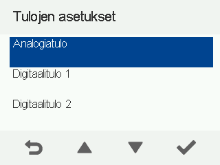 - Valitse sisääntulo selaamalla nuolipainikkeilla haluamasi sisääntulon kohdalle ja valitsemalla Hyväksy. Vaihtoehdot ovat: