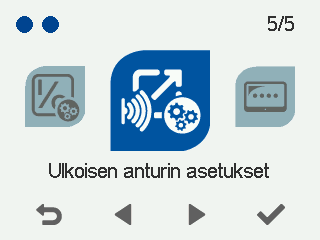 - Valitse nuolipainikkeilla Ulkoisen anturin asetukset: