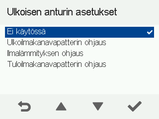 - Valitse ulkoisen anturin toimintatapa nuolipainikkeilla. Vaihtoehdot ovat: