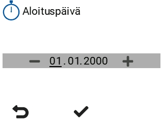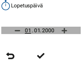 Ajastetun toiminnon alku- ja loppupäivän asettaminenValitse Asetukset: Valitse nuolipainikkeilla Ajastettu toiminto. Aseta ajastetun toiminnon aloituspäivä: Aseta ajastetun toiminnon lopetuspäivä: